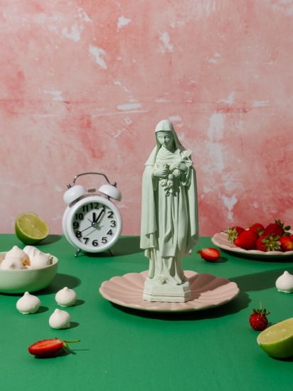 Teresinha em Soft Core traz a pureza da sua fé em tons suaves e serenos. Este acabamento transmite a sua essência de simplicidade e devoção, criando uma aura tranquila que nos lembra que a grandeza está nos pequenos gestos de amor.